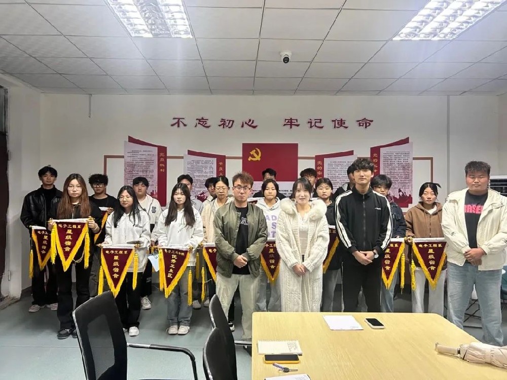 為不斷進(jìn)一步增強(qiáng)電子工程學(xué)院學(xué)子們的衛(wèi)生意識(shí)和文明素養(yǎng),展現(xiàn)良好的校園形象,電子工程學(xué)院于2024年10月21日開(kāi)展了“流動(dòng)紅旗”評(píng)比活動(dòng)。其中黨總支書記王正偉、學(xué)生支部書記李玲玲對(duì)上周優(yōu)秀宿舍頒發(fā)流動(dòng)紅旗,各班級(jí)班長(zhǎng)、團(tuán)支書、學(xué)生會(huì)干部參與本次頒發(fā)儀式。