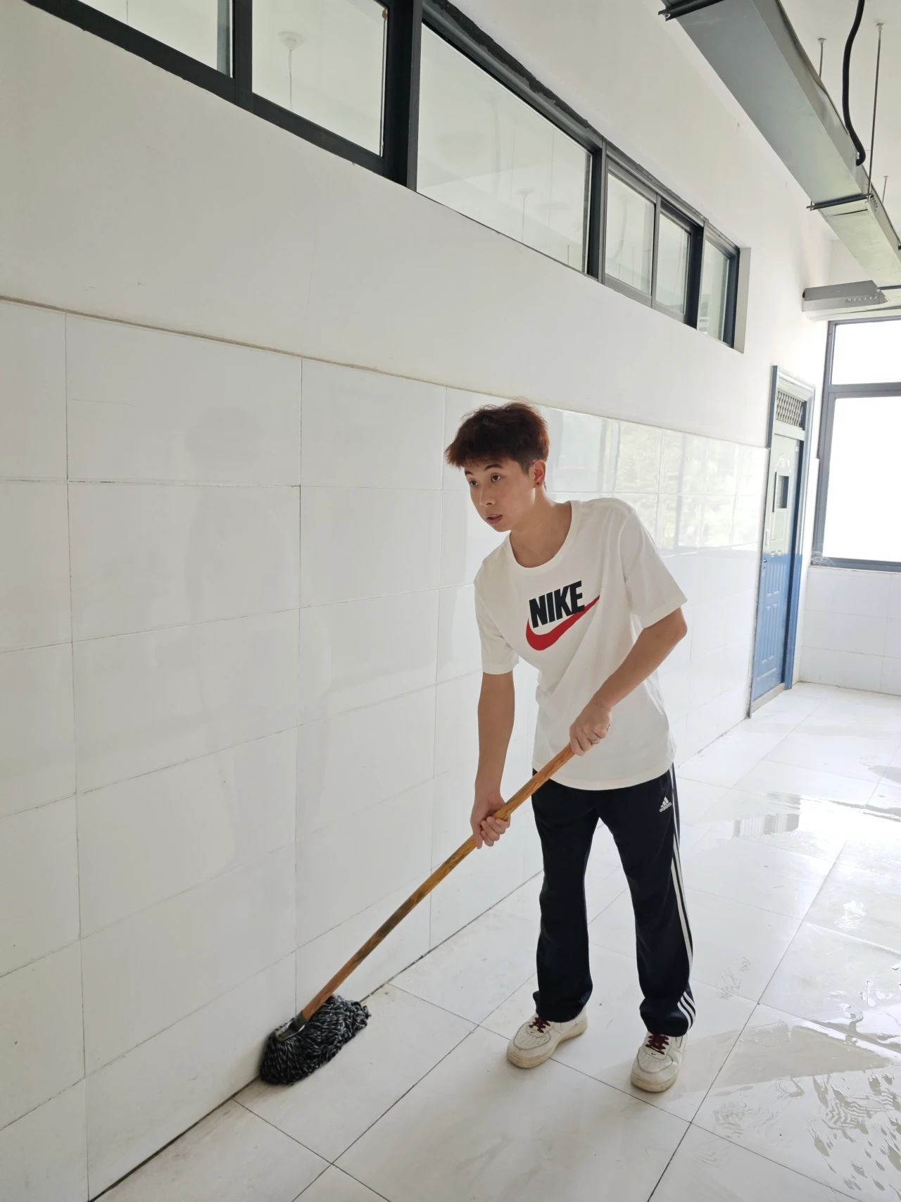 同學(xué)們以飽滿的熱情投入到志愿服務(wù)活動之中,他們手持各種清潔工具,志愿者們分工明確,有的負(fù)責(zé)拖地,有的負(fù)責(zé)擦拭樓梯扶手和墻壁、有的負(fù)責(zé)清理垃圾。他們不怕臟、不怕累,用心打掃著每一個角落,確保教學(xué)樓的整潔。在他們的共同努力下,教學(xué)樓煥然一新,變得寬敞明亮、干凈整潔。