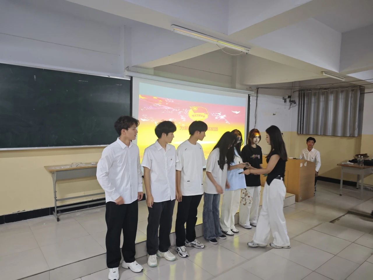 最后,入團儀式在中國共青團團歌《光榮啊,中國共青團》的合唱聲中圓滿結束。