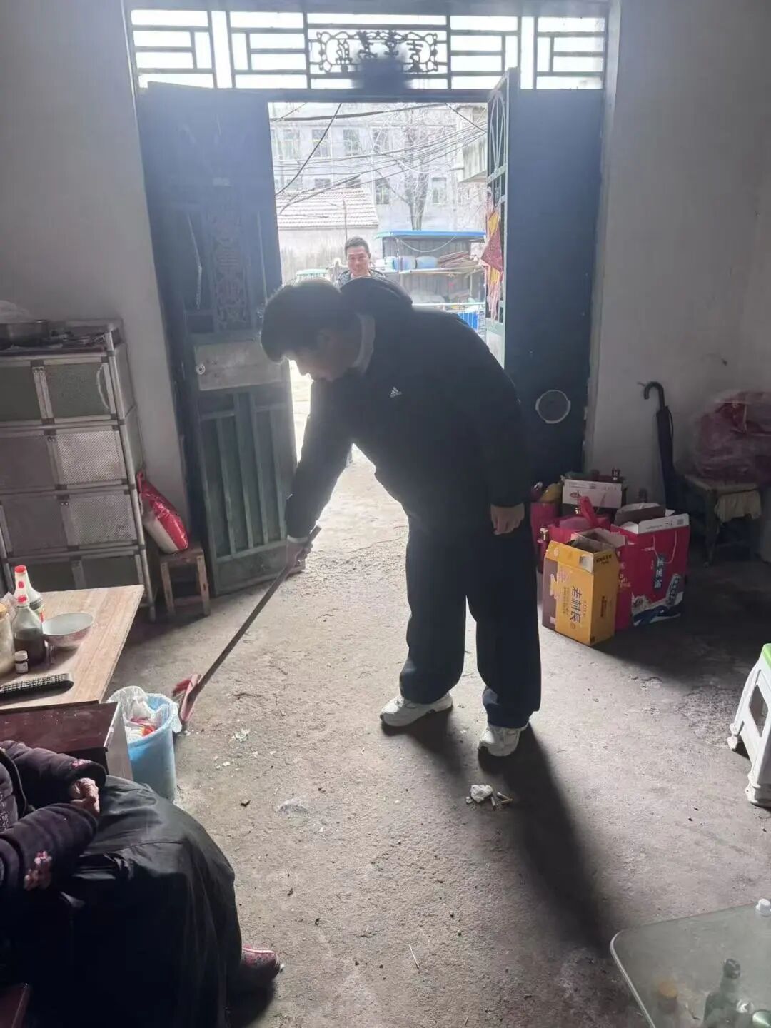 在此次實(shí)踐活動(dòng)中,胡恩點(diǎn)同學(xué)走進(jìn)村居、探望獨(dú)居老人。他耐心陪伴老人閑話家常,細(xì)致詢問(wèn)他們的身體狀況與生活所需,認(rèn)真傾聽(tīng)長(zhǎng)輩們講述過(guò)往的故事。與此同時(shí),他還主動(dòng)拿起掃帚、抹布,幫助老人清掃庭院、整理居室,用樸實(shí)的行動(dòng)為老人們營(yíng)造干凈舒適的生活環(huán)境。鏡頭記錄下的畫(huà)面里,青年學(xué)子溫暖的笑容與老人慈祥的目光交織,成為這個(gè)冬日里一道動(dòng)人的風(fēng)景。