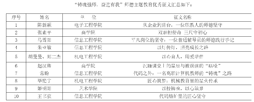 鄭州電子信息職業(yè)技術(shù)學(xué)院 關(guān)于“鑄魂強(qiáng)師,奮進(jìn)有我”師德教育主題征文和師德師風(fēng)建設(shè)優(yōu)秀案例評(píng)選結(jié)果的公示