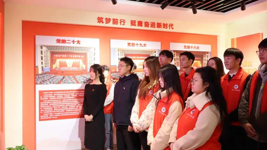 2024年12月1日,電子工程學院黨總支書記王正偉、學生黨支部書記李玲玲、教師黨員代表郭文建以及電子工程學院“紅色星火”志愿者們一行前往鄭州黨史館進行參觀學習。