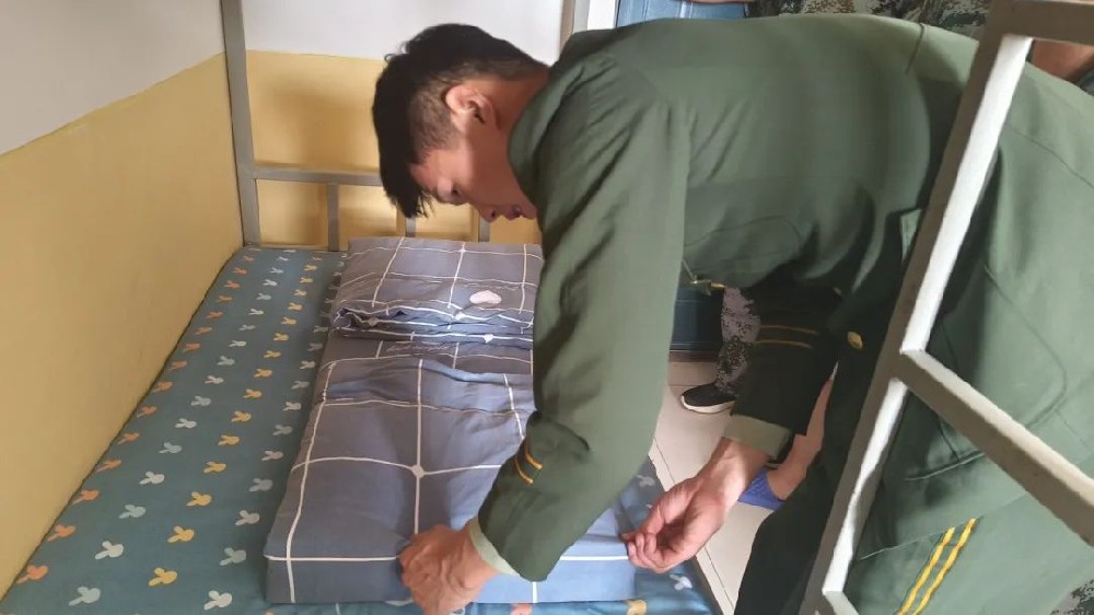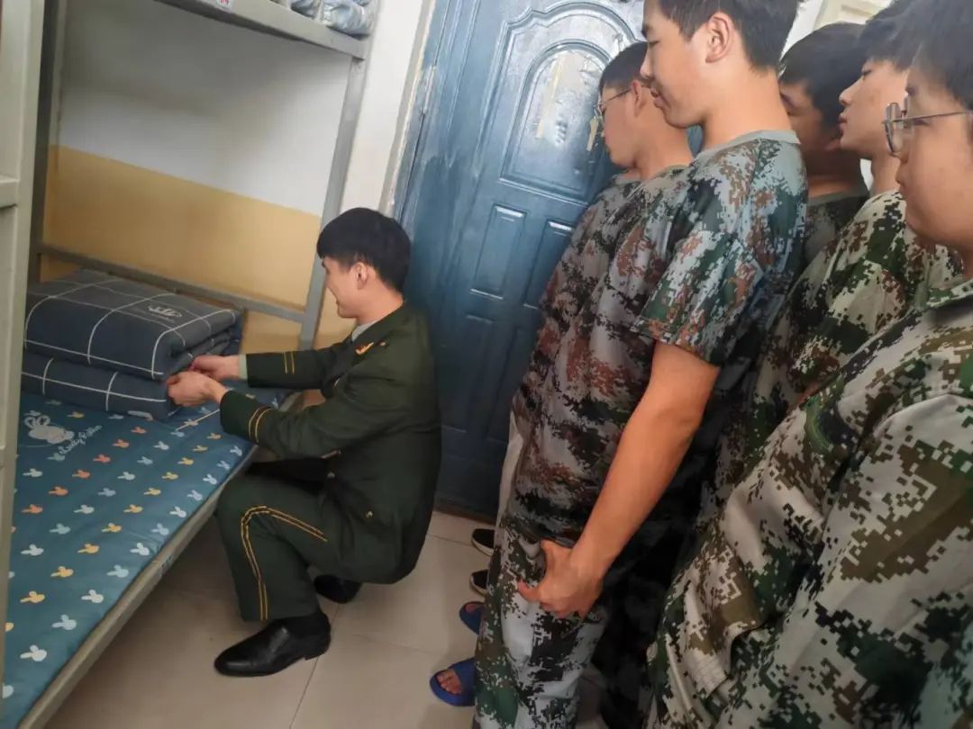 隨后,退役士兵們分組對(duì)新生進(jìn)行指導(dǎo)。他們耐心地講解疊被子的要領(lǐng),手把手地教新生如何將被子疊得方正整齊。新生們認(rèn)真聆聽(tīng),積極嘗試,雖然一開(kāi)始有些手忙腳亂,但在退役士兵們的耐心指導(dǎo)下,逐漸掌握了技巧。