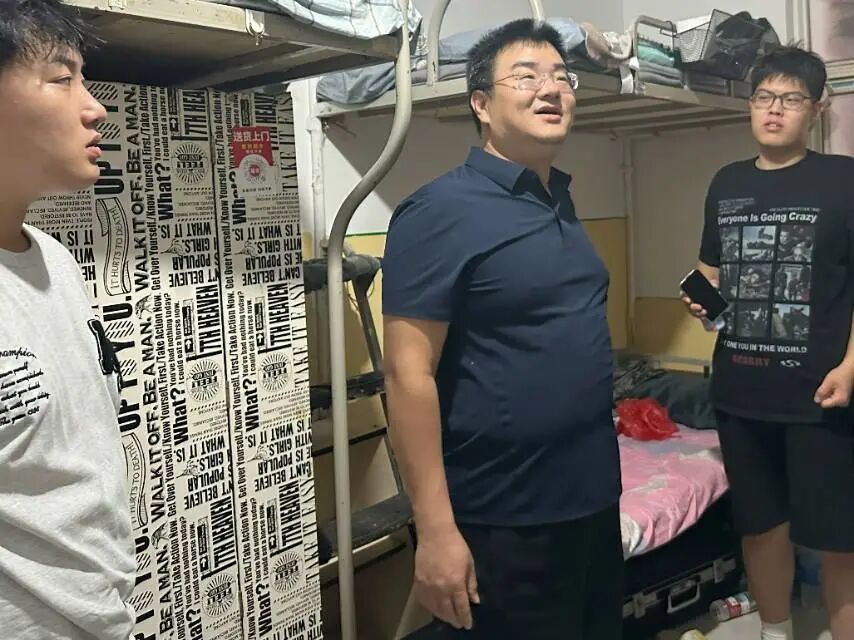 在走訪過程中,陳校長親切地問候入學新生學生,與新生進行面對面的交流,了解他們的學習情況、生活需求等方面的信息,同時為同學們目前生活中遇到的問題,進行答疑解惑、解決困難,并且提出寶貴建議,提醒同學們在平常生活中務必注意財產安全、用電安全和人身安全,謹防詐騙。同時向新生介紹了學校的規(guī)章制度、校園文化、教育資源等方面的信息,幫助他們更好地融入校園生活。