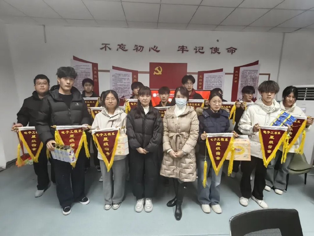 為不斷進一步增強電子工程學(xué)院學(xué)子們的衛(wèi)生意識和文明素養(yǎng),展現(xiàn)良好的校園形象,電子工程學(xué)院于2025年11月17日開展了“流動紅旗”評比活動。其中黨總支書記李玲玲、輔導(dǎo)員代表梁哲老師對優(yōu)秀宿舍頒發(fā)流動紅旗,各班級班長、團支書、學(xué)院生活部參與本次頒發(fā)儀式。