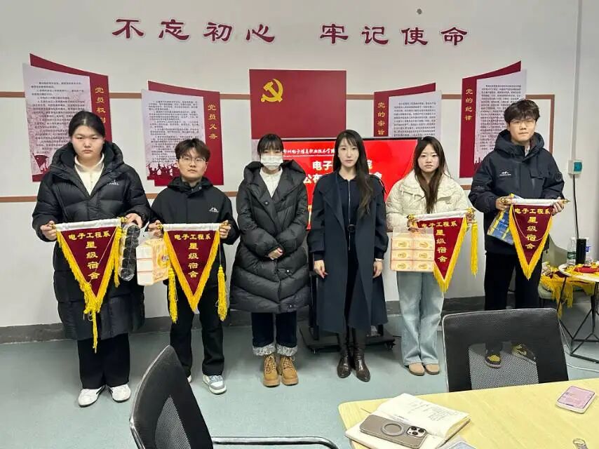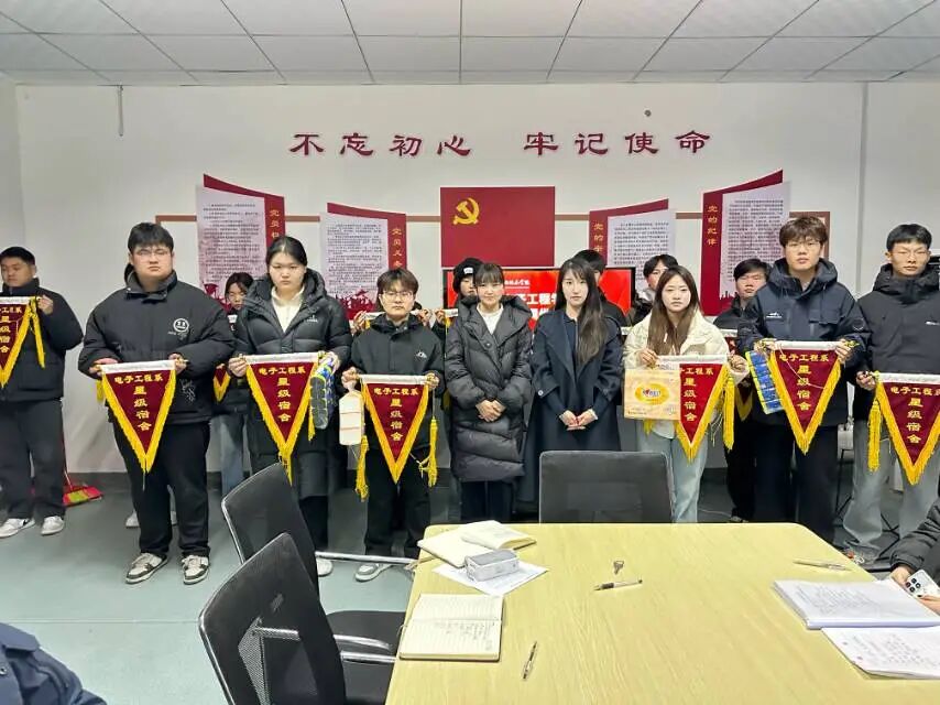 為不斷進(jìn)一步增強(qiáng)電子工程學(xué)院學(xué)子們的衛(wèi)生意識和文明素養(yǎng),展現(xiàn)良好的校園形象,電子工程學(xué)院于2025年12月15日開展了“流動紅旗”評比活動。其中黨總支書記李玲玲、輔導(dǎo)員代表梁哲老師對優(yōu)秀宿舍頒發(fā)流動紅旗,各班級班長、團(tuán)支書、學(xué)院生活部參與本次頒發(fā)儀式。