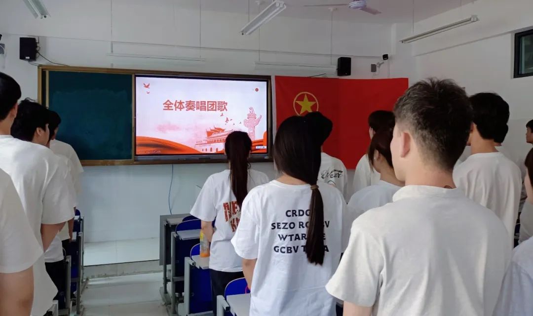 入團(tuán)儀式在莊嚴(yán)的國歌聲中拉開序幕,全體人員肅立,行注目禮,齊唱國歌。