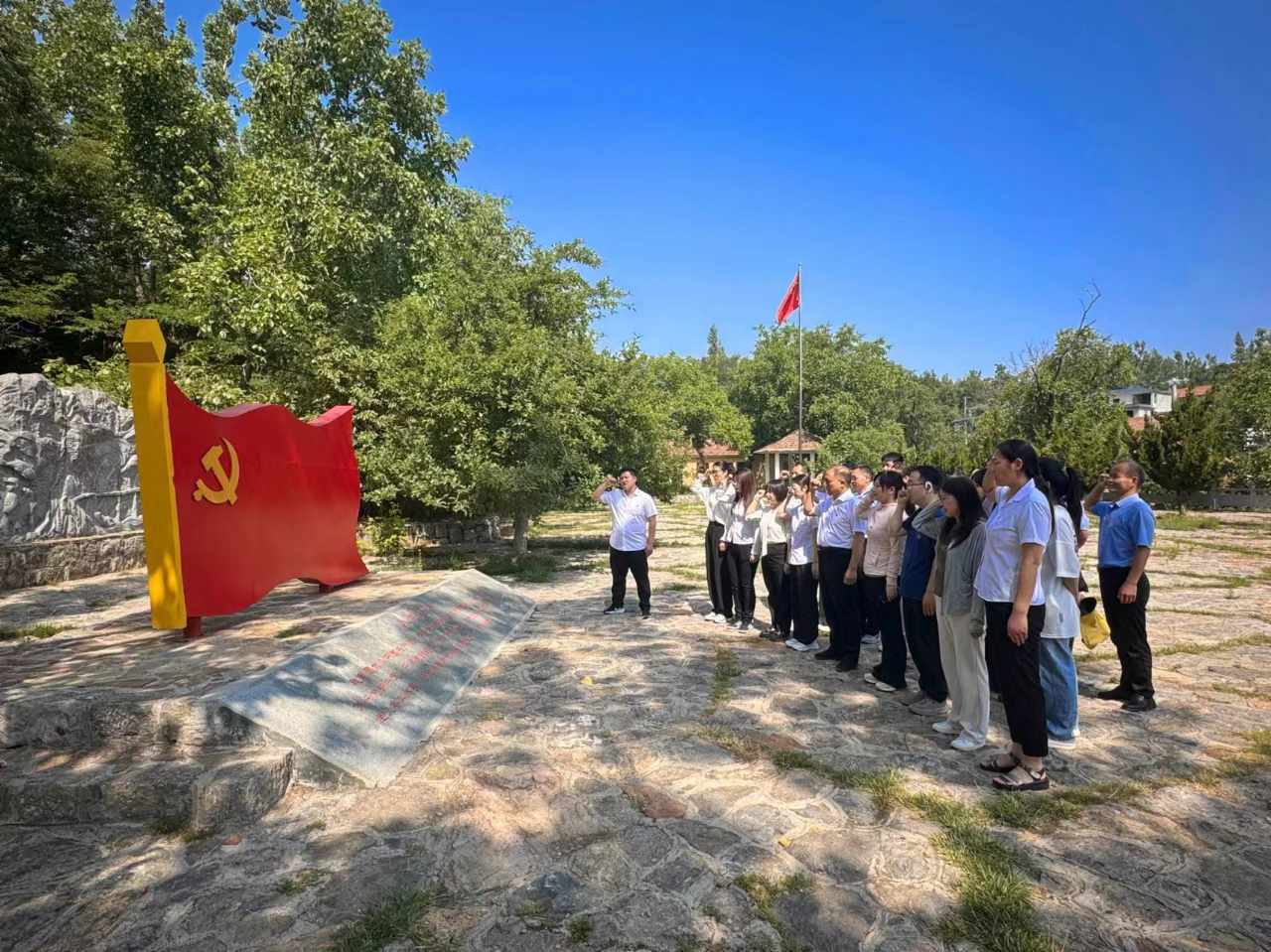 “我志愿加入中國(guó)共產(chǎn)黨員,遵守黨的章程,履行黨員義務(wù)……”在中原豫西抗日紀(jì)念園廣場(chǎng),全體黨員在王正偉書(shū)記的帶領(lǐng)下面對(duì)黨旗,舉起右拳重溫入黨誓詞。莊嚴(yán)的誓詞,表明了每一位宣誓黨員,為實(shí)現(xiàn)自己的人生價(jià)值所作出的無(wú)悔選擇。無(wú)論在順境還是逆境,作為一名共產(chǎn)黨員,都應(yīng)牢記初心使命,牢記革命先烈英勇奮進(jìn)的事跡,時(shí)刻不忘激勵(lì)自我,砥礪前行。通過(guò)重溫入黨誓詞,表達(dá)對(duì)黨的忠誠(chéng)和信仰和對(duì)革命先烈們的崇高敬意和深切懷念。大家在參觀學(xué)習(xí)過(guò)程中紛紛表示深受觸動(dòng)和啟發(fā)。他們表示,要銘記歷史、緬懷先烈,繼承和發(fā)揚(yáng)抗戰(zhàn)精神。