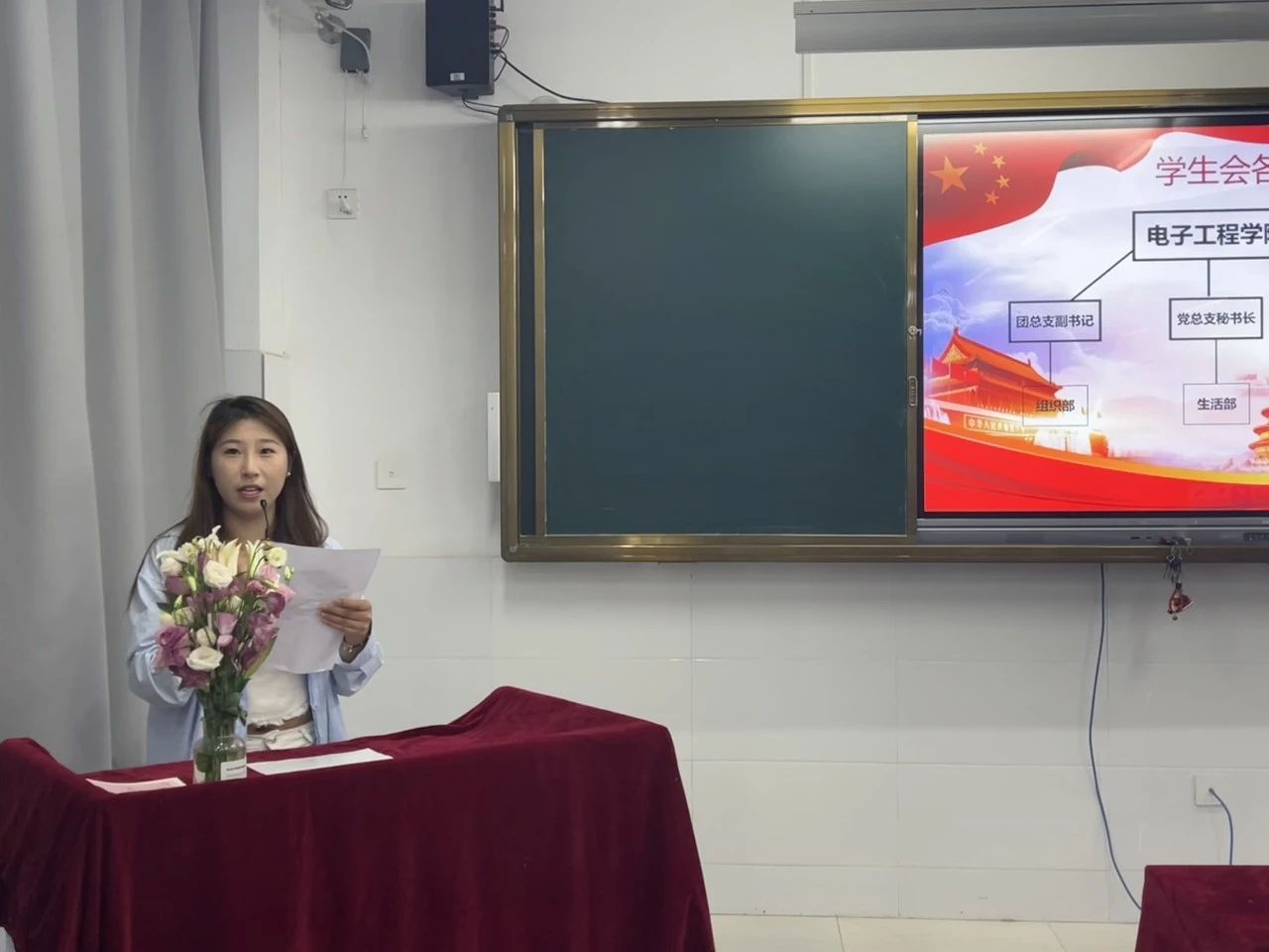 本次電子工程學院學生會換屆競選大會于2024年6月18日在五號樓105教室拉開了帷幕。黨總支書記王正偉、學生支部書記李玲玲、輔導員代表劉蒙蒙、梁哲、張鶴、吳征銘、李茵,22屆學生會干部和23屆學生會成員及各班級團支書出席本次學生會換屆會議。