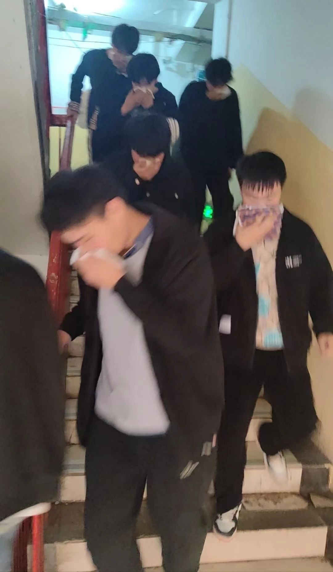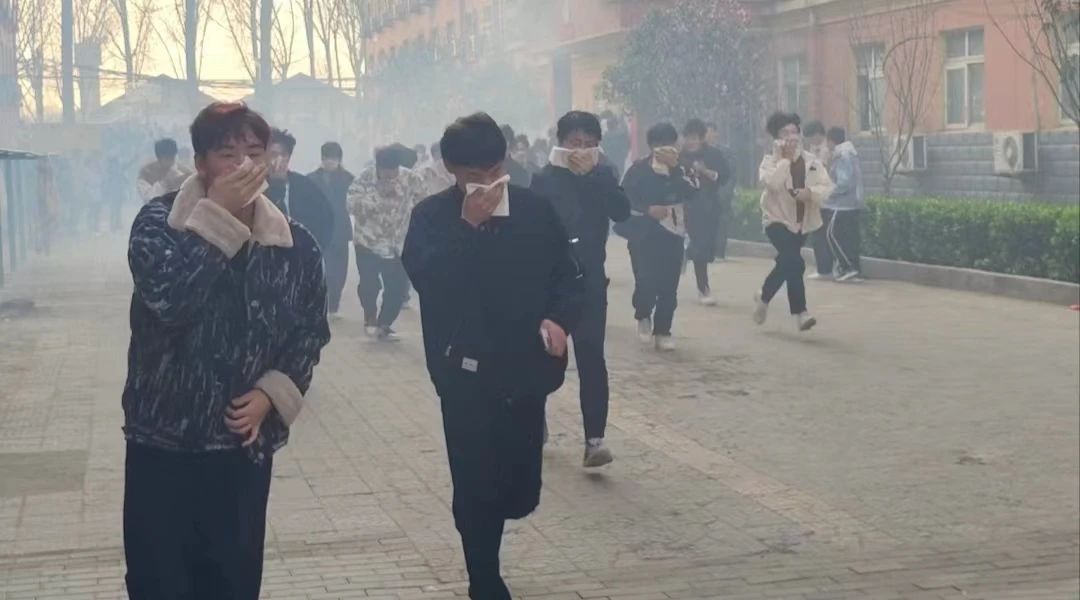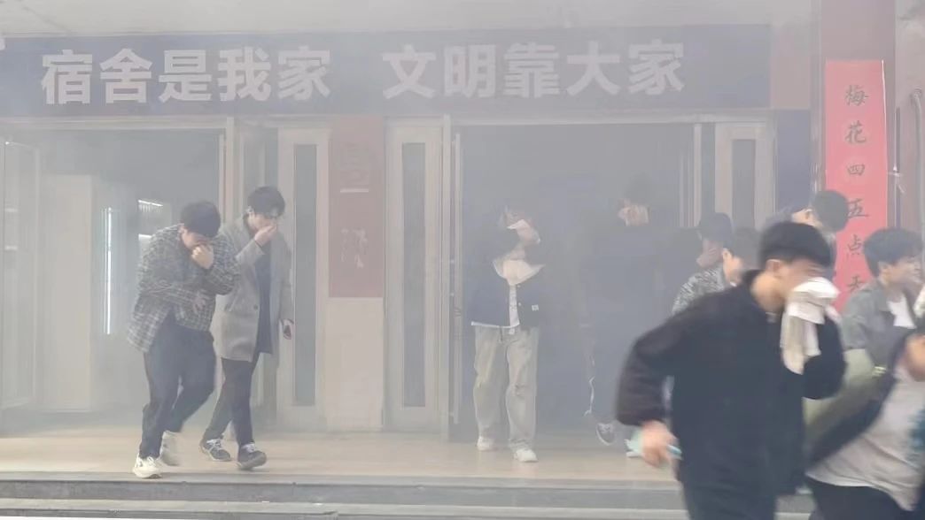 17:20隨著煙霧彈的投放,消防疏散逃生演練正式開啟。同學(xué)們反應(yīng)迅速,在教員和老師們的疏導(dǎo)下,井然有序地沿著消防通道撤離至安全地帶。