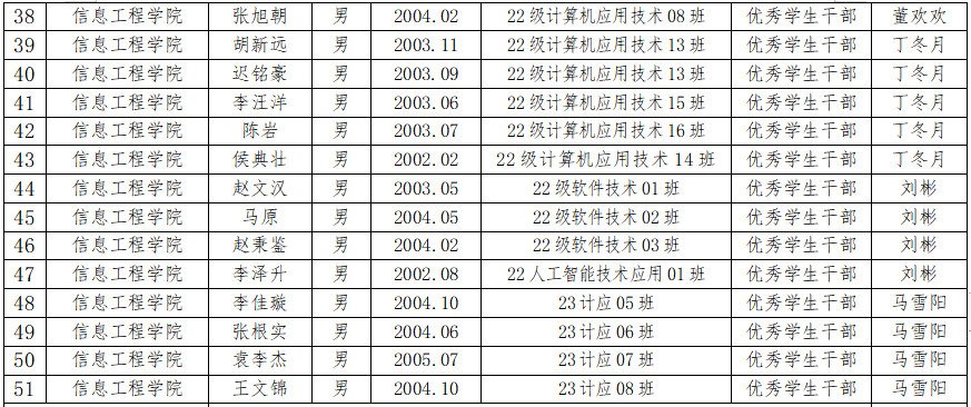 如對公示內(nèi)容有異議,請于公示期內(nèi)向信息工程學(xué)院輔導(dǎo)員辦公室反映。