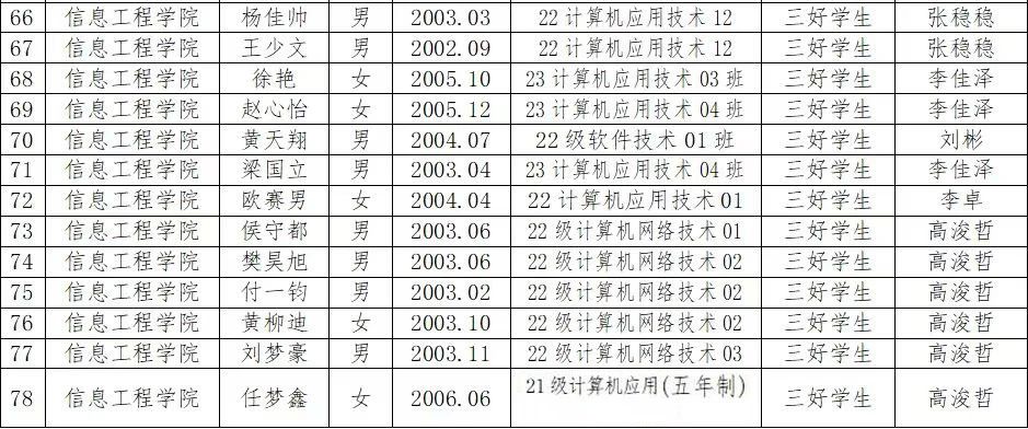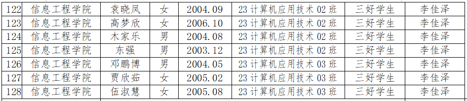 擬推薦2023級軟件技術(shù)01班等5個班級為先進(jìn)班集體、劉曉璐等51人為優(yōu)秀學(xué)生干部、黃天翔等128人為三好學(xué)生,現(xiàn)將評選結(jié)果公示如下,公示期三天。