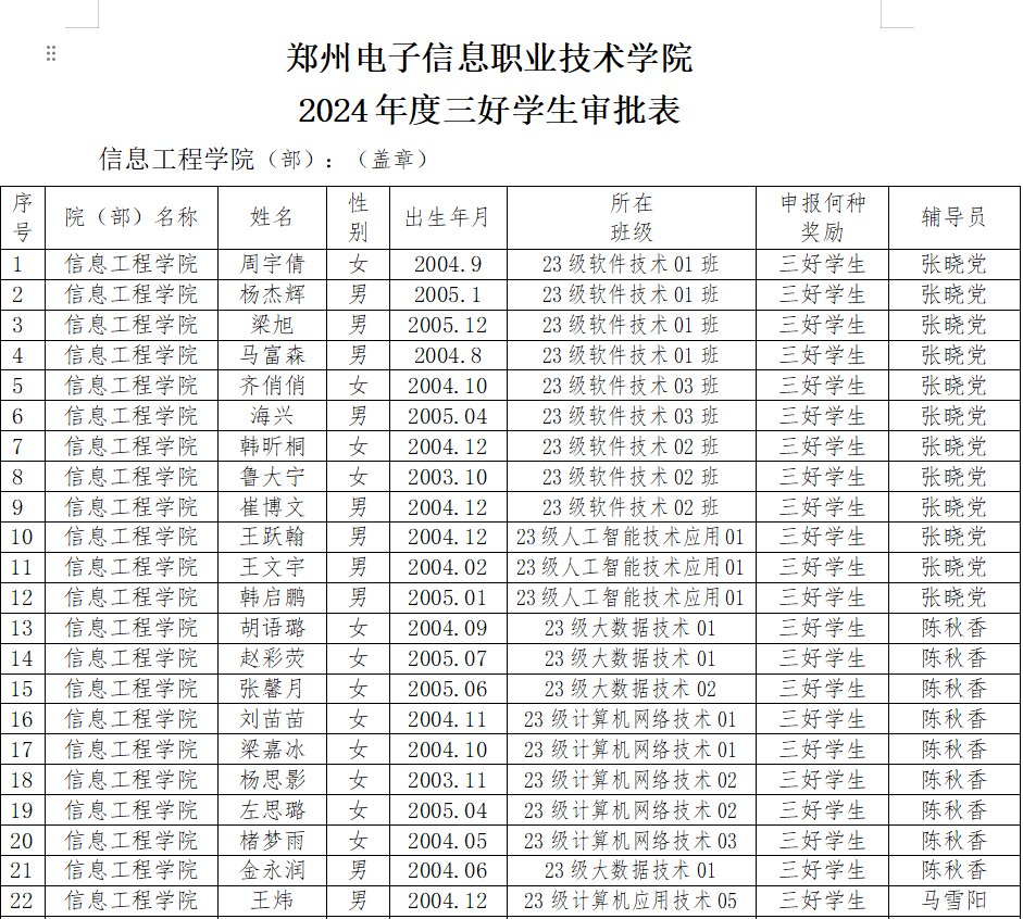 信息工程學(xué)院 | 2024年度先進(jìn)班集體、優(yōu)秀學(xué)生干部和三好學(xué)生評選結(jié)果公示