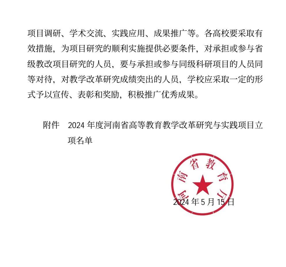 根據(jù)《關(guān)于做好 2024 年河南省高等教育教學改革研究與實踐項目立項工作的通知》(教高〔2024〕24 號):