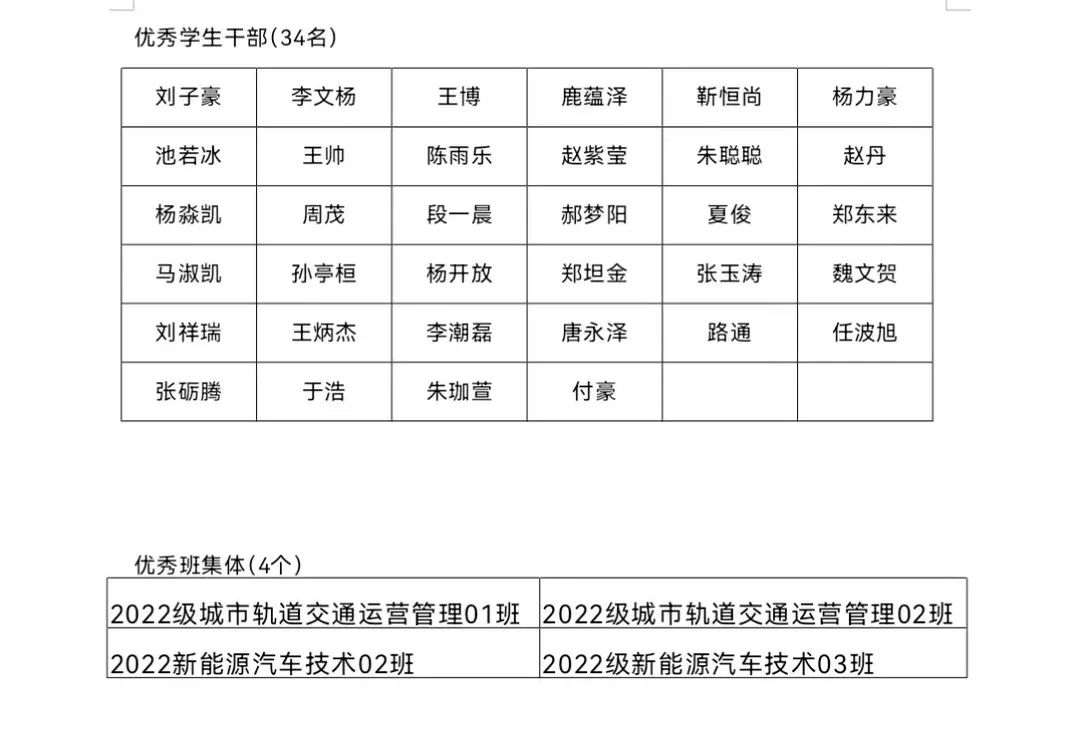 為提高學生綜合素質,樹立典型,激勵學生勤奮學習、健康成長,我院根據(jù)《鄭州電子信息職業(yè)技術學院關于評選三好學生、優(yōu)秀學生干部、先進班集體的通知》(鄭電院【2024】038號)文件要求開展2024年度校級三好學生、優(yōu)秀學生干部、先進班集體的評選工作,依據(jù)評審條件和要求,車輛工程學院內(nèi)遵循公正、公平、公開的原則經(jīng)個人推薦、班級評選、學院評審小組審核,擬推薦三好學生86名,優(yōu)秀學生干部34名,先進班集體4個。名單公示如下: