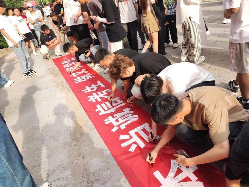宣講結束后,各學院學生代表在以“當誠信考生,做文明學生”為主題的紅色橫幅上簽下自己的名字,表達了對誠信考試的堅定承諾。