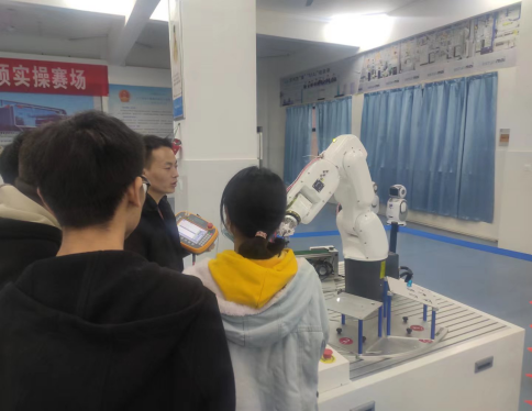 校內(nèi)實訓室能夠滿足本專業(yè)基本要求,本專業(yè)校內(nèi)實訓室有一批先進的實踐教學設備,專業(yè)實驗室能夠承擔包括電工電子實習、機械基礎課程設計實習、機電傳動和控制實習、液壓與氣動實習、傳感器與檢測技術實習、PLC實習、單片機實習、機器人編程與應用仿真實習、機器人技術應用實習、畢業(yè)頂崗實習等,很好的滿足了學生實習實訓要求,能夠充分提高學生動手能力。