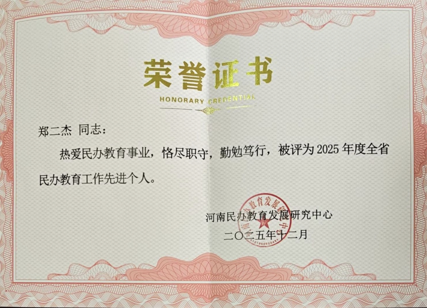此外,鄭二杰、李玲玲兩位老師始終堅守教育初心,履職盡責、踏實耕耘,被授予“2025年度全省民辦教育工作先進個人”的榮譽稱號。